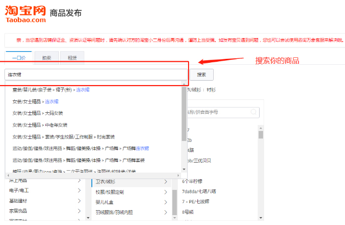 如果再发布的时候,不知道怎么去看自己的类目,可以在产品发布的时候去搜索。