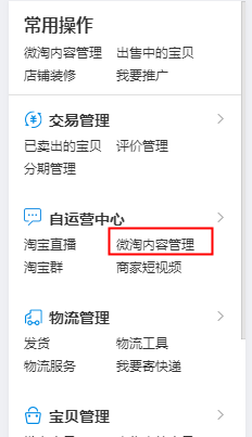 1、在卖家中心,点开微淘内容管理。